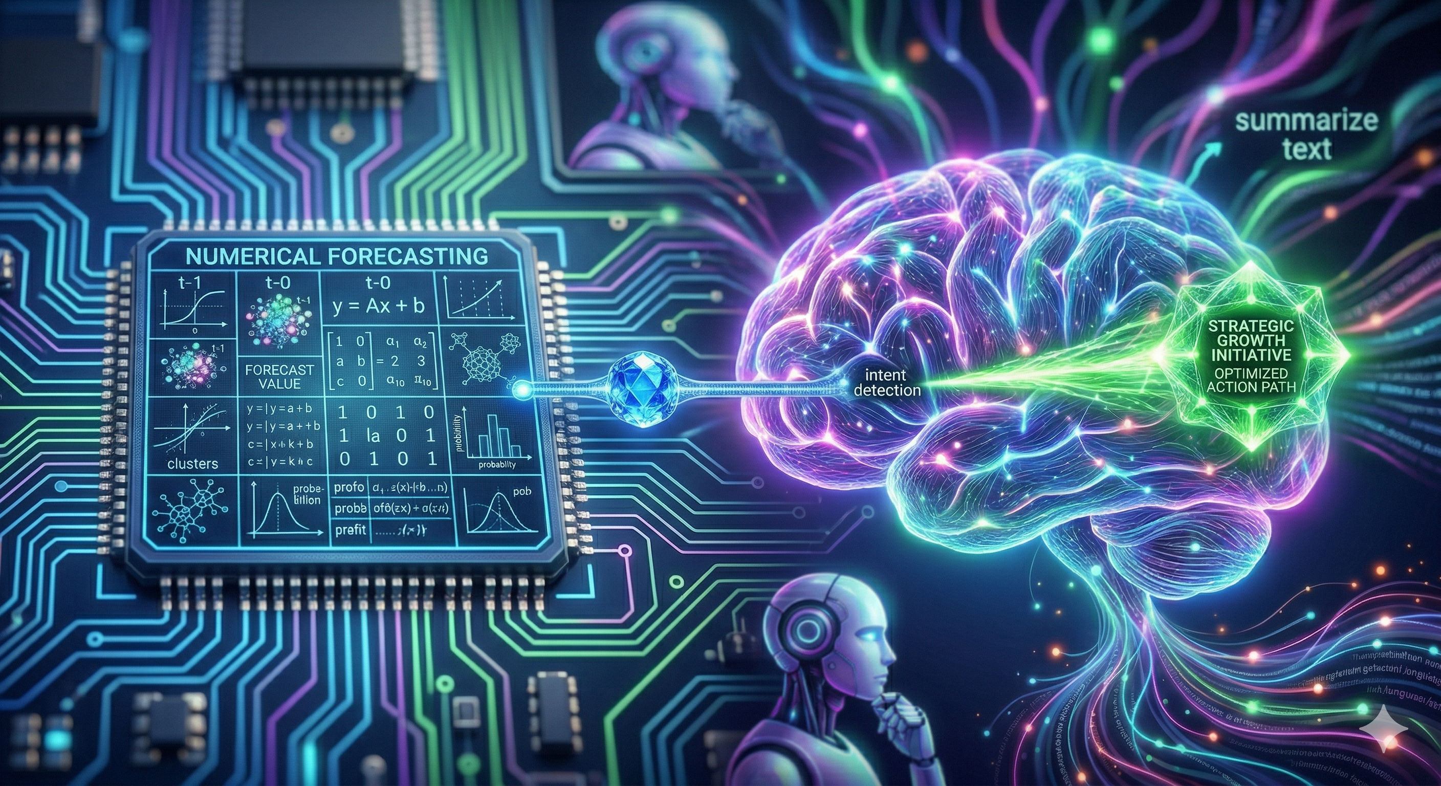 - LLMs & Agents: Dominate the world of Reasoning, Language, and Context (Unstructured Data: text, conversation). An LLM is a phenomenal communicator, but it cannot “calculate” a complex forecast with the same rigorous accuracy as a dedicated time-series model. It is probabilistic, not deterministic.